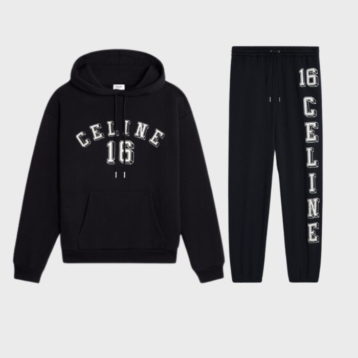 Celine 16 Loose Tracksuit In Cotton Fleece Black/White